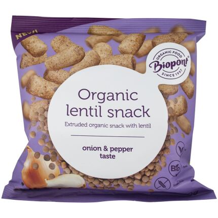 CHRUPKI Z SOCZEWICY Z CEBULĄ I CZARNYM PIEPRZEM BEZGLUTENOWE BIO 60 g – BIOPONT