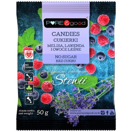 CUKIERKI Z MELISĄ, LAWENDĄ I OWOCAMI LEŚNYMI ZE STEWIĄ BEZ CUKRU 50 g – PURE&GOOD