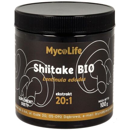 GRZYBY SHIITAKE EKSTRAKT BEZGLUTENOWY BIO 100 g – PIĘĆ PRZEMIAN (MYCOLIFE)